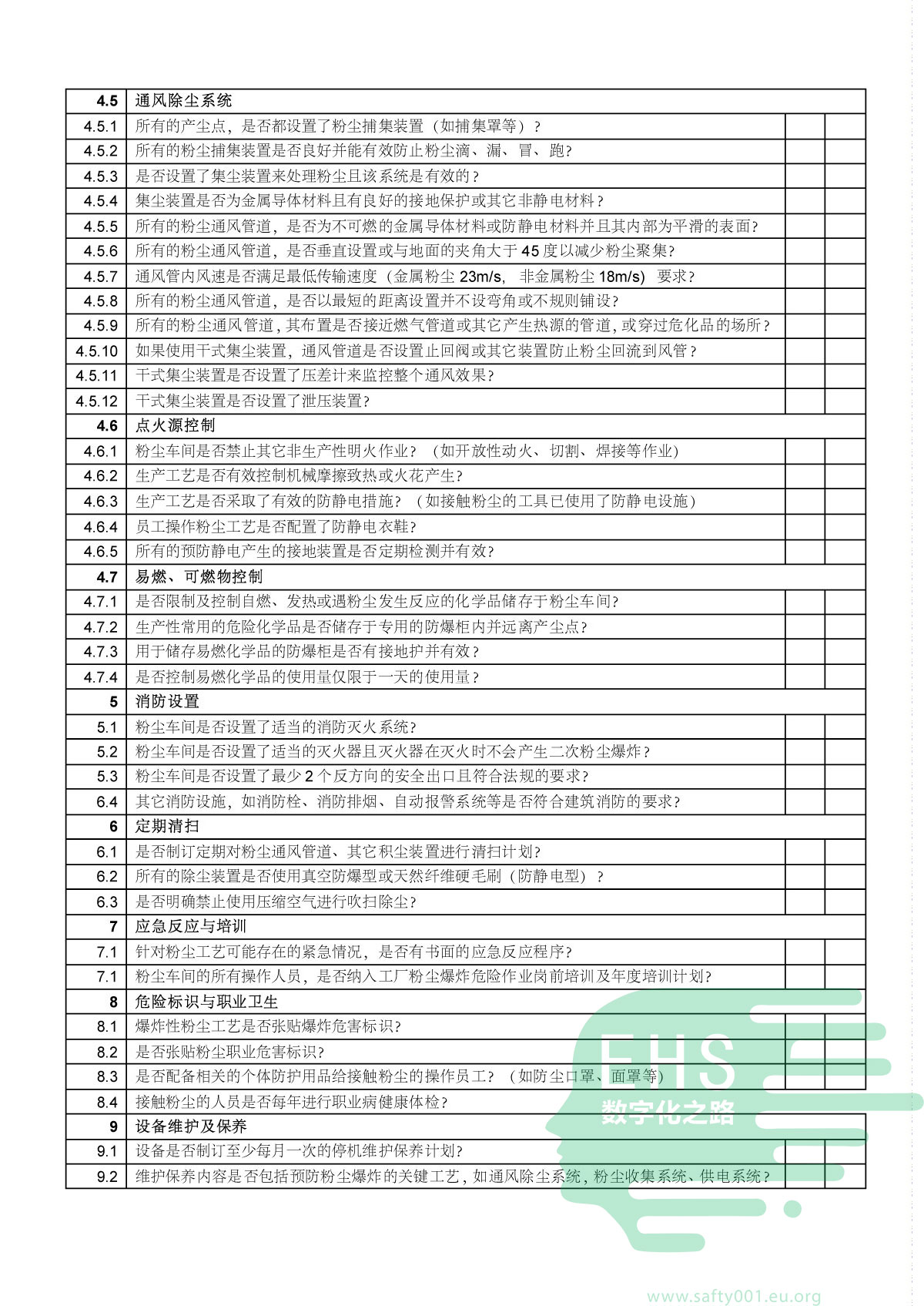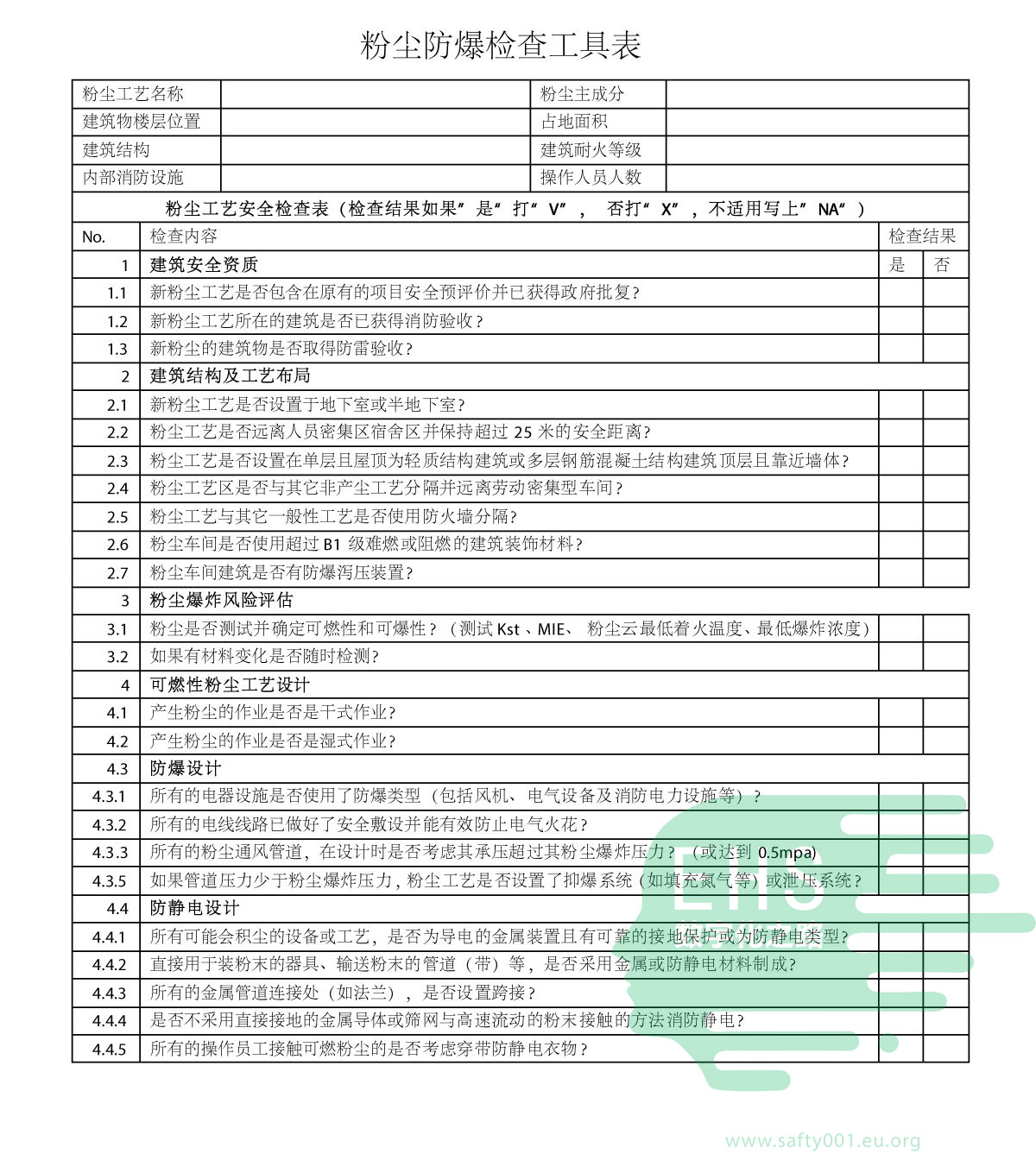 粉尘检查表