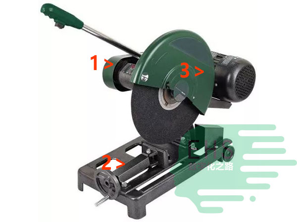 | 1.皮带防护罩 2.工件夹具 3.切割片防护罩 |