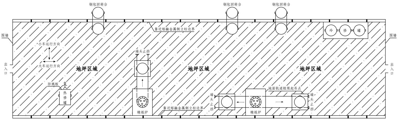 注:面向钢水、液渣吊运侧包括正对连铸跨和面向钢水罐行走路线两个方向。